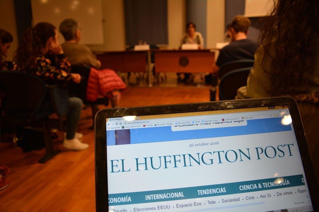 Los periodistas están obligados a adaptarse a las exigencias de los lectores. Los nuevos medios digitales están cambiando los valores de los periódicos y de los redactores. Las herramientas disponibles en Internet permiten averiguar cuáles son las mejores fórmulas para titular, saber si una noticia se lee entera o solo los primeros párrafos o qué información se visita más y por lo tanto cuenta con más ‘clics’. Montserrat Domínguez, directora de la edición española de El Huffington Post, acudió a la Sala de Grados de la Facultad de Filosofía y Letras esta semana para hablar con los alumnos sobre la situación actual del periodismo y el trabajo diario en un medio digital.
