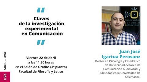 La Facultad de Filosofía y Letras acogerá el próximo viernes 29 de abril el seminario «Claves de la investigación experimental en Comunicación”, incluido en el ciclo de Seminarios Internacionales de Innovación Docente e Investigación en Comunicación (SIDIC), organizados por el Departamento de Historia Moderna, Contemporánea y de América, Periodismo, Comunicación Audiovisual y Publicidad de la UVa.